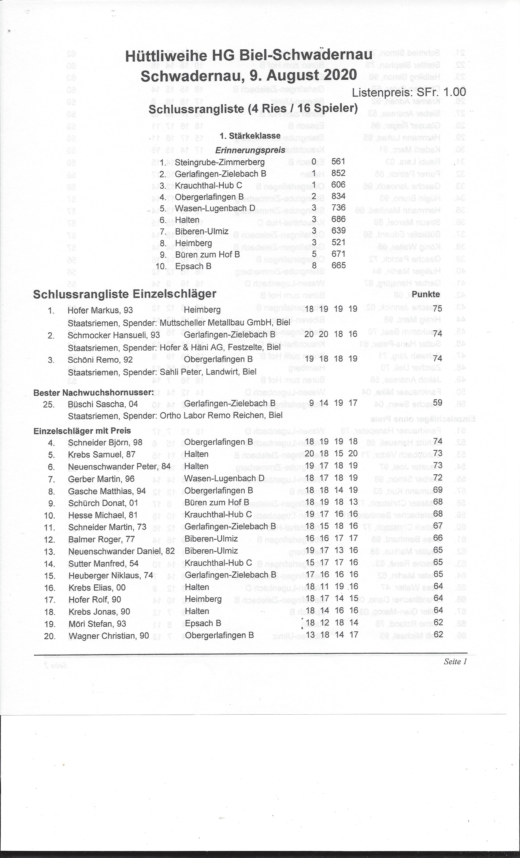 Veteranenhornussen 2020 Kernenried