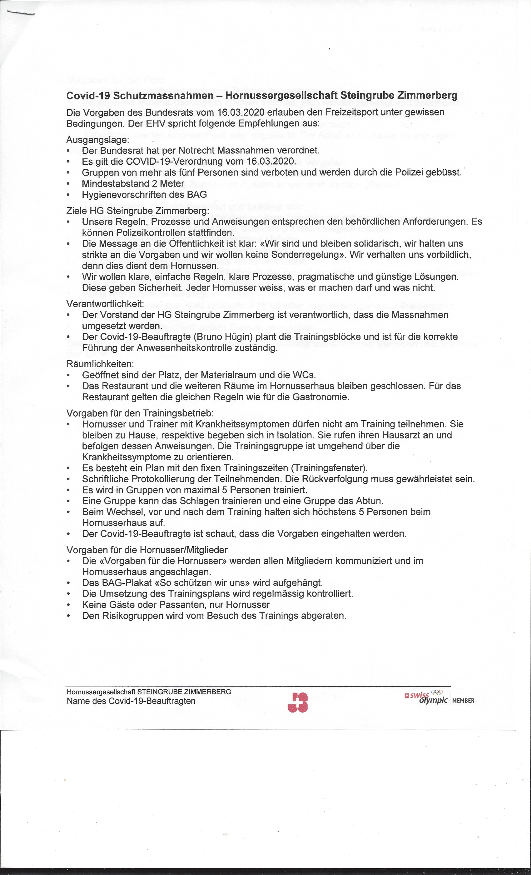 Schutzmassnahmen Covit 19