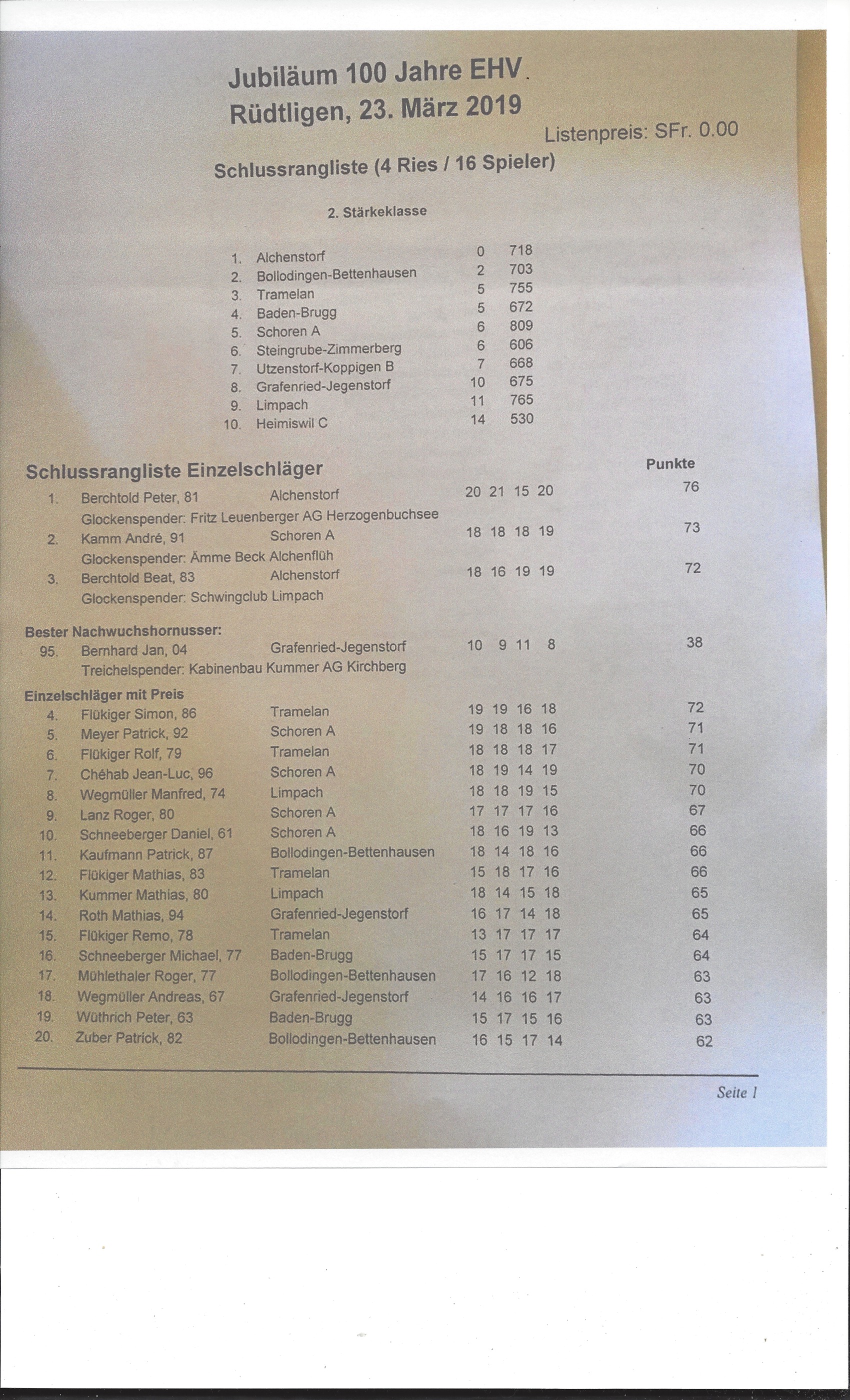 Nach 6 Jahren wieder ein Horn, 2. Rang 4. Stärkeklasse!!!